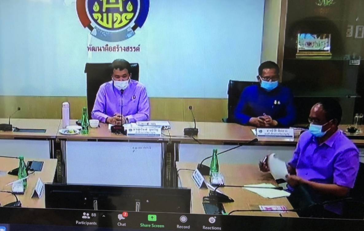 โดยมีนายสุทธิพงษ์ จุลเจริญ อธิบดีกรมการพัฒนาชุมชน เป็นประธาน และมอบนโยบายบทบาทกรมการพัฒนาชุมชนกับการพัฒนาคุณภาพชีวิตตามหลักทฤษฎีใหม่ ประยุกต์สู่ โคก หนอง นา โมเดล โดยประชุมผ่านระบบวีดิทัศน์ทางไกล แอปพลิเคชั่น Zoom ณ ห้อง War Room ชั้น 5 กรมการพัฒนาชุมชน