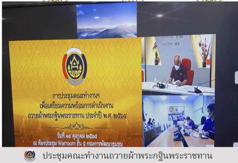 นาย สุรศักดิ์ อักษรกุล รองอธิบดีกรมการพัฒนาชุมชนประชุมคณะทำงานถวายผ้าพระกฐินพระราชทาน ประจำปี พ.ศ. ๒๕๖๔เพื่อเป็นการเตรียมความพร้อมการดำเนินการงานถวายผ้าพระกฐินพระราชทาน กรมการพัฒนาชุมชนประจำ พุทธศักราช ๒๕๖๔ กรมการพัฒนาชุมชน กำหนดประชุมคณะทำงานถวายผ้าพระกฐิน โดยมี นางสาวจำเรียงรัตน์ กล่ำมี ผอ.กลุ่มงานส่งเสริมการพัฒนาชุมชนรักษาราชการแทนพัฒนาการจังหวัดชัยนาท พร้อมพัฒนาการอำเภอ และเจ้าหน้าที่สำนักงานพัฒนาชุมชน ที่เกี่ยวข้องเข้าร่วมประชุม ซึ่งเป็นไปตามมาตรการป้องกันและควบคุมโรคระบาดของไวรัส COVID -19 ของกระทรวงสาธารณสุข ร่วมรับฟังการประชุมผ่านระบบการประชุมทางไกล (Video Conference) ณ ห้อง War Room ชั้น ๕ กรมการพัฒนาชุมชน