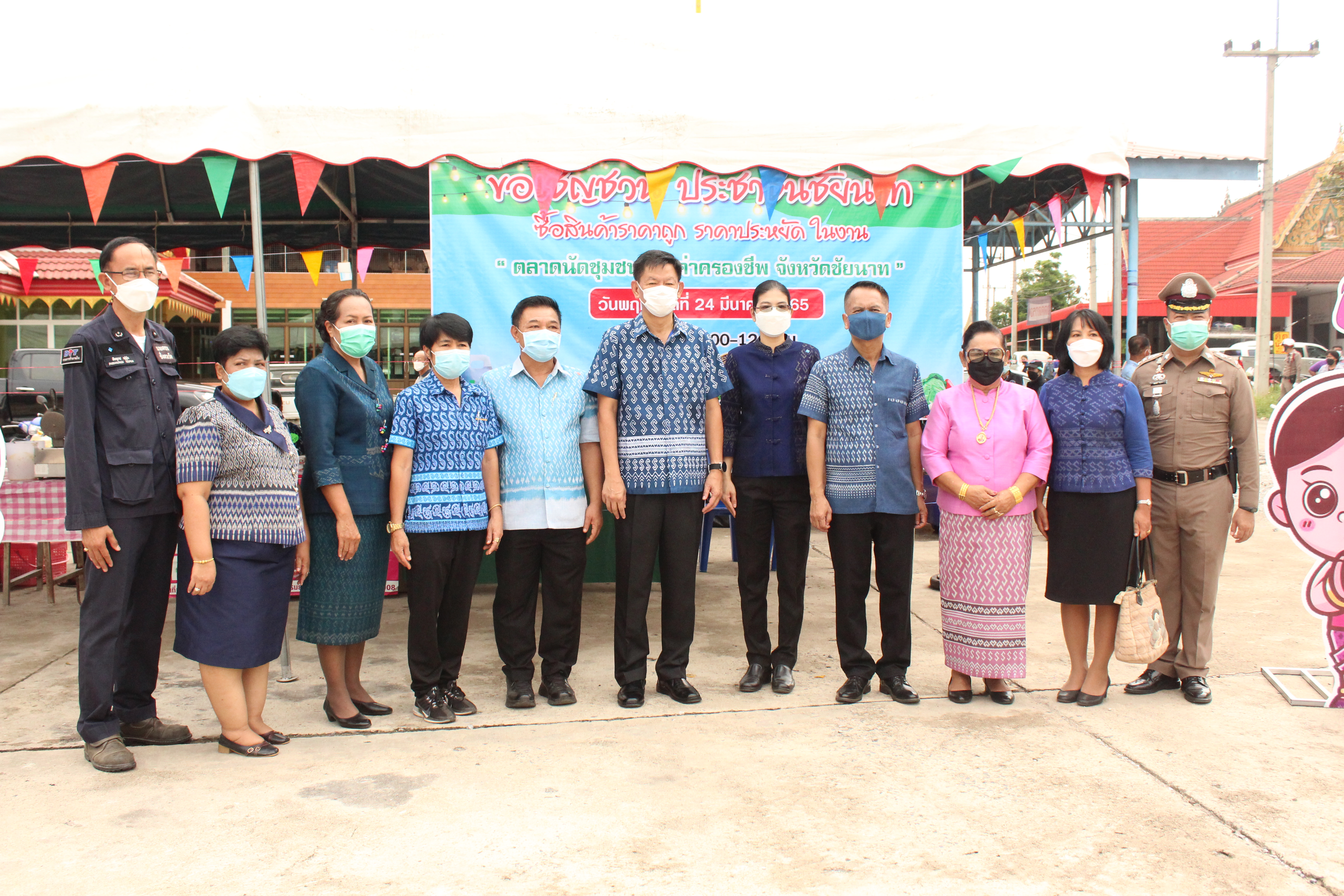 นายรังสรรค์ ตันเจริญ ผู้ว่าราชการจังหวัดชัยนาท เป็นประธานเปิดงาน “ตลาดนัดชุมชน ช่วยค่าครองชีพจังหวัดชัยนาท” เพื่อบรรเทาปัญหาค่าครองชีพของครัวเรือนประชาชน พร้อมด้วยนางสาวชไมพร อำไพจิตร รองผู้ว่าราชการจังหวัดชัยนาทและหัวหน้าส่วนราชการจังหวัดชัยนาท ร่วมเปิดงาน โดยมี นางสาวจำเรียงรัตน์ กล่ำมี ผู้อำนวยการกลุ่มงานส่งเสริมการพัฒนาชุมชนรักษาราชการแทนพัฒนาการจังหวัดชัยนาทพร้อมด้วย ผู้อำนวยการกลุ่มงาน พัฒนาการอำเภอ เจ้าหน้าที่สำนักงานพัฒนาชุมชนจังหวัดชัยนาทและผู้ผลิต ผู้ประกอบการสินค้าOTOP เข้าร่วมกิจกรรม