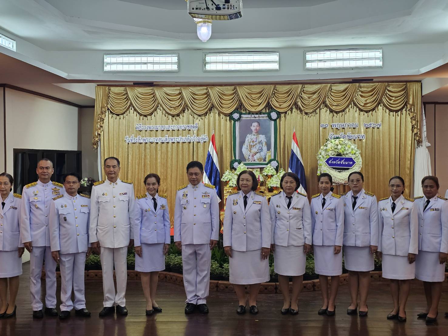 💞🎯>>ที่อาคารวิมลคุณากร ศาลากลางจังหวัดชัยนาท นางสาวชไมพร อำไพจิตร รองผู้ว่าราชการจังหวัดชัยนาท เป็นประธานในพิธีวางพวงมาลาและถวายราชสดุดี เนื่องในวันที่ระลึกพระบาทสมเด็จพระปกเกล้าเจ้าอยู่หัว ประจำปี 2567 โดยมี นายวิทยา ชพานนนท์ รองผู้ว่าราชการจังหวัดชัยนาท หัวหน้าส่วนราชการ ศาล ทหาร ตำรวจ เข้าร่วมฯ