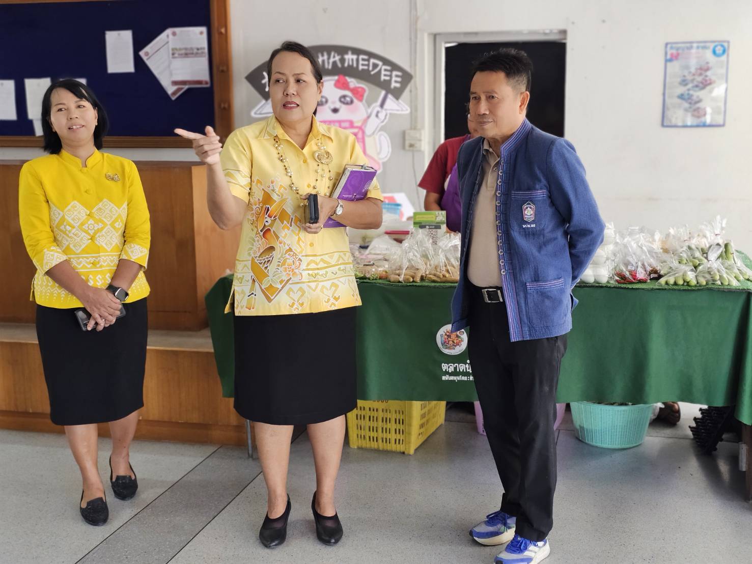 💞🎯>> ที่บริเวณ ห้องโถง ศาลากลางจังหวัดจังหวัดชัยนาท (หลังเก่า) นางสาวจำเรียงรัตน์ กล่ำมี ผู้อำนวยการกลุ่มงานส่งเสริมการพัฒนาชุมชน รักษาราชการแทนพัฒนาการจังหวัดชัยนาท พร้อมด้วยกลุ่มงานส่งเสริมการพัฒนาชุมชน และเจ้าหน้าที่สำนักงานพัฒนาชุมชนจังหวัดชัยนาท ร่วมกันจัดกิจกรรมตลาดนัดชุมชน ผลผลิตของคนชัยนาท และโครงการฟื้นฟูเศรษฐกิจของกระทรวงพาณิชย์ ในการเพิ่มช่องทางการตลาดให้กับกลุ่มผู้ผลิตผู้ประกอบการ OTOP ผลผลิต และผลิตภัณฑ์จากศูนย์เรียนรู้การพัฒนาคุณภาพชีวิต ตามหลักทฤษฎีใหม่ ประยุกต์สู่ “โคก หนอง นา โมเดล” และผลผลิตและผลิตภัณฑ์ของกลุ่มเป้าหมายบริษัท ประชารัฐรักสามัคคี (วิสาหกิจเพื่อสังคม) จำกัด ในวันประชุมคณะกรมการจังหวัดและหัวหน้าส่วนราชการประจำจังหวัดชัยนาท ประจำเดือนตุลาคม 2567 โดยได้รับเกียรติจากนายทินกร บุญเงิน ผู้ตรวจราชการกรมการพัฒนาชุมชน ปฏิบัติหน้าที่ผู้อำนวยการศูนย์ศึกษาและพัฒนาชุมชนสระบุรี หัวหน้าส่วนราชการ ข้าราชการ เจ้าหน้าที่ เยี่ยมชม ให้กำลังใจ และร่วมสนับสนุนสินค้า ที่นำมาจัดจำหน่าย