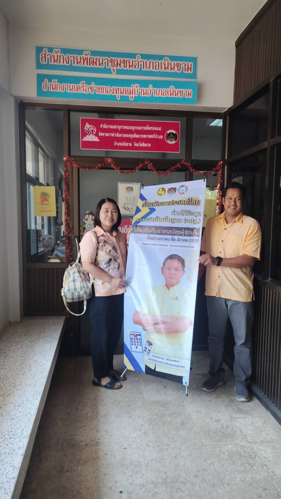 💞🎯>>ที่อำเภอเนินขาม และอำเภอสรรคบุรี นายชัยณรงค์ กาญจะนะกันโห พัฒนาการจังหวัดชัยนาท มอบหมายนางสุมาลี น้อยสำลี ผู้อำนวยการกลุ่มงานสารสนเทศการพัฒนาชุมชน พร้อมด้วยนางสาวสุราวรรณ์ ทองสว่าง นักวิชาการพัฒนาชุมชน ลงพื้นที่นิเทศติดตามงานด้านสารสนเทศการพัฒนาชุมชน ลงพื้นที่ติดตามการจัดเก็บข้อมูลความจำเป็นพื้นฐาน (จปฐ.) ประจำปี 2568 ด้วยเครื่องมืออิเล็กทรอนิกส์ และเน้นย้ำให้พัฒนากร ให้การสนับสนุนการจัดเก็บข้อมูลความจำเป็นพื้นฐาน (จปฐ.) ประจำปี 2568 ด้วยเครื่องมืออิเล็กทรอนิกส์ โดยให้แนะนำวิธีการบันทึกข้อมูลครัวเรือนให้แก่ตัวแทนอาสาสมัครผู้จัดเก็บข้อมูล เพื่อให้สามารถดำเนินการจัดเก็บข้อมูล จปฐ. ถูกต้อง ครบถ้วน สมบูรณ์ และทันเวลา