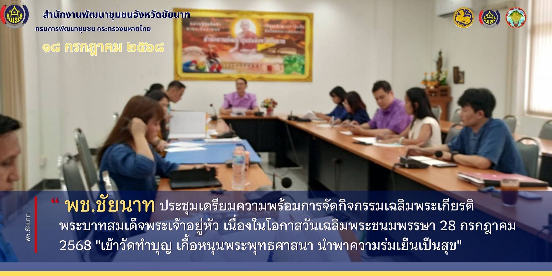 🕊📌พช.ชัยนาท ประชุมเตรียมความพร้อมการจัดกิจกรรมเฉลิมพระเกียรติพระบาทสมเด็จพระเจ้าอยู่หัว เนื่องในโอกาสวันเฉลิมพระชนมพรรษา 28 กรกฎาคม 2568 “เข้าวัดทำบุญ เกื้อหนุนพระพุทธศาสนา นำพาความร่มเย็นเป็นสุข”