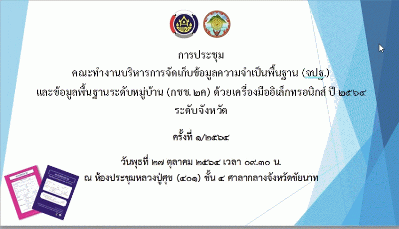 พช.ชัยนาท ประชุมคณะทำงานบริหารการจัดเก็บข้อมูลความจำเป็นพื้นฐาน (จปฐ.) และข้อมูลพื้นฐานระดับ หมู่บ้าน (กชช. 2ค) ด้วยเครื่องมืออิเล็กทรอนิกส์ ปี 2564 ระดับจังหวัด