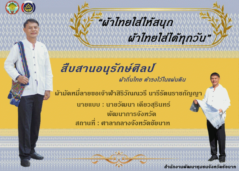 พช.ชัยนาท ลั่นฆ้อง ผ้าไทยใส่ให้สนุก” เพื่อสืบสาน อนุรักษ์ศิลป์ผ้าถิ่นไทย ดำรงไว้ในแผ่นดิน