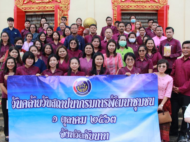 สำนักงานพัฒนาชุมชนจังหวัดชัยนาท (แต่งกายผ้าไทย เสื้อธีมสีบานเย็น) จัดกิจกรรมวันคล้ายวันก่อตั้งกรมการพัฒนาชุมชน และโครงการส่งเสริมความสัมพันธ์ สหกรณ์ออมทรัพย์กรมการพัฒนาชุมชน ประจำปี 2563