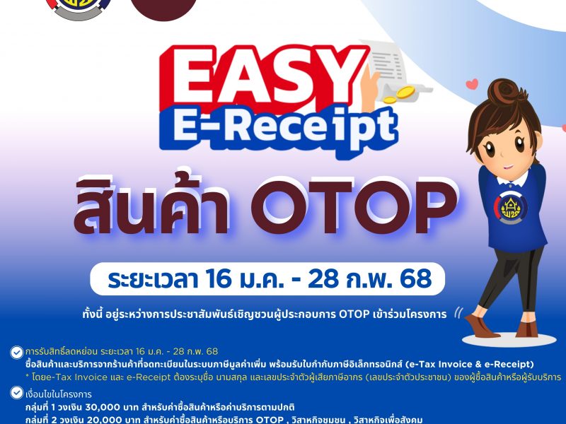 🕊📌พช.ชัยนาทขอนำเสนอ ตัวอย่างร้าน OTOP ร่วม Easy E-Receipt & E-TAX ระยะเวลาการรับสิทธิ์ลดหย่อน ตั้งแต่ 16 ม.ค. – 28 ก.พ. 68